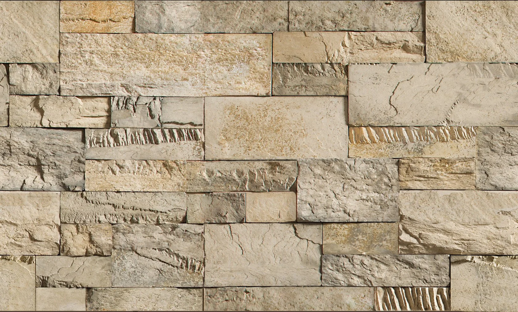 Clean-edged modular stone with rugged split faces and hints of sawtooth texture.